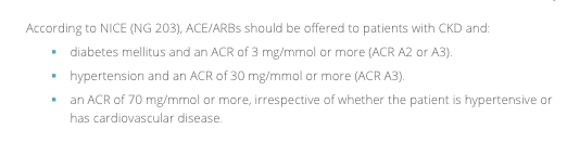 According to NICE, ACE/ARBs should be offered to patients with CKD and…{what indications} [3]