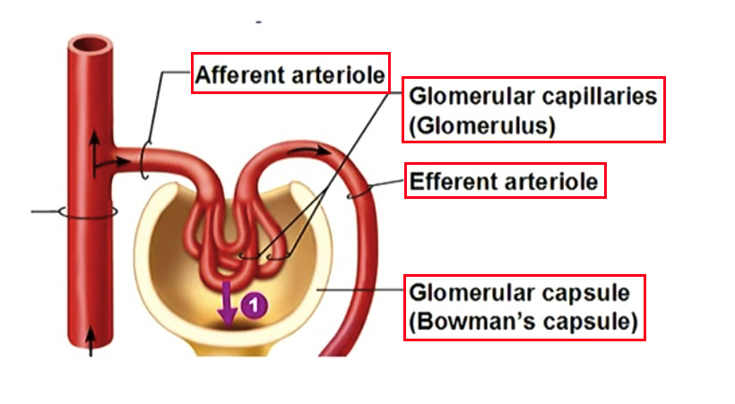 After the glomerulus only water and the smallest particles can get through to the proximal tubule