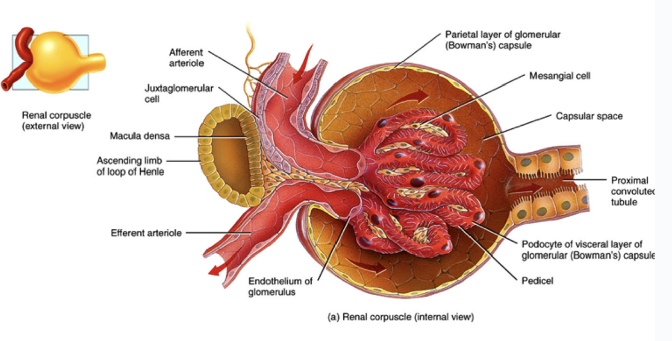 beginning of nephron: Glomerulus + glomerular capsule