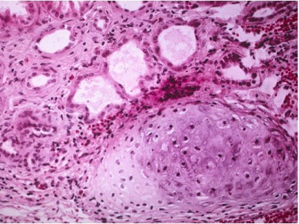 Hematoxylin-Eosin (H&E stain): Blastema, Stroma and Epithelia.