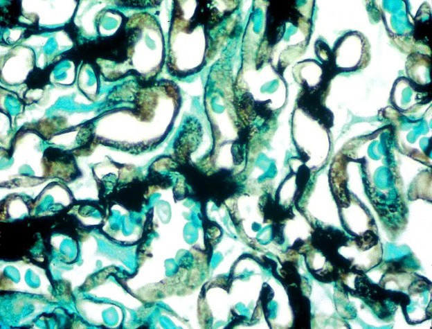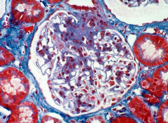 - Trichrome stain: expansion of mesangium
