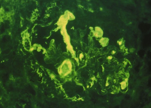 IgM deposition noted in histologic sample below. What is her diagnosis and treatment?