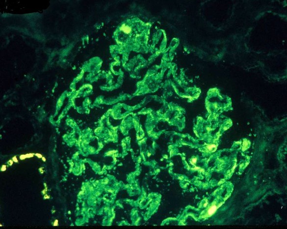 - Trapping of IgM within mesangium