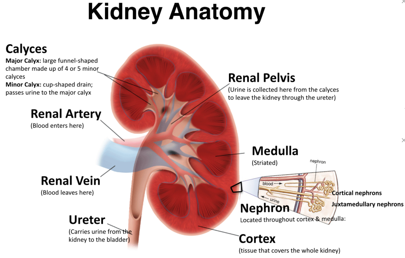 Draw a kidney with the following structures:
