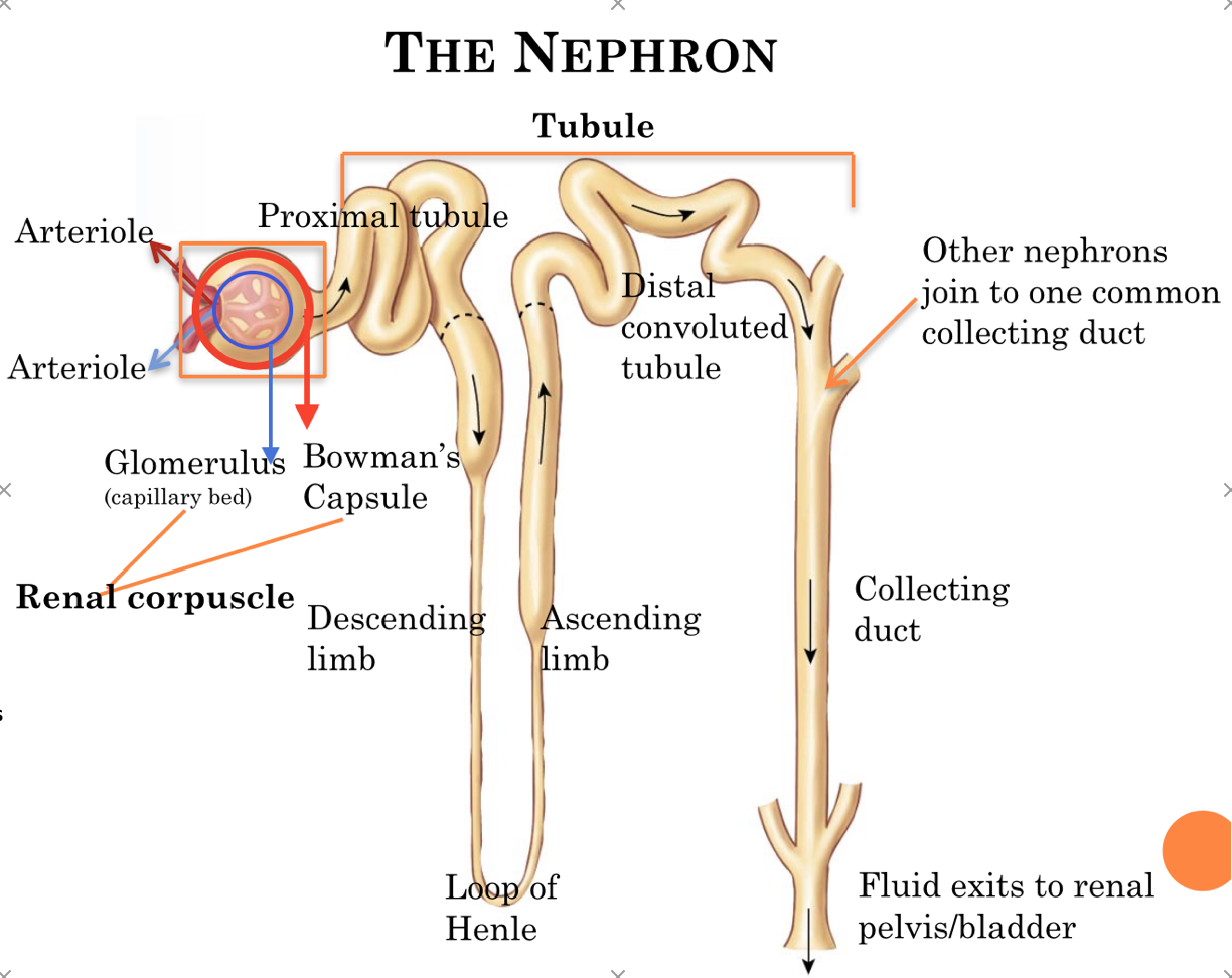 Draw the nephron with the following labels: