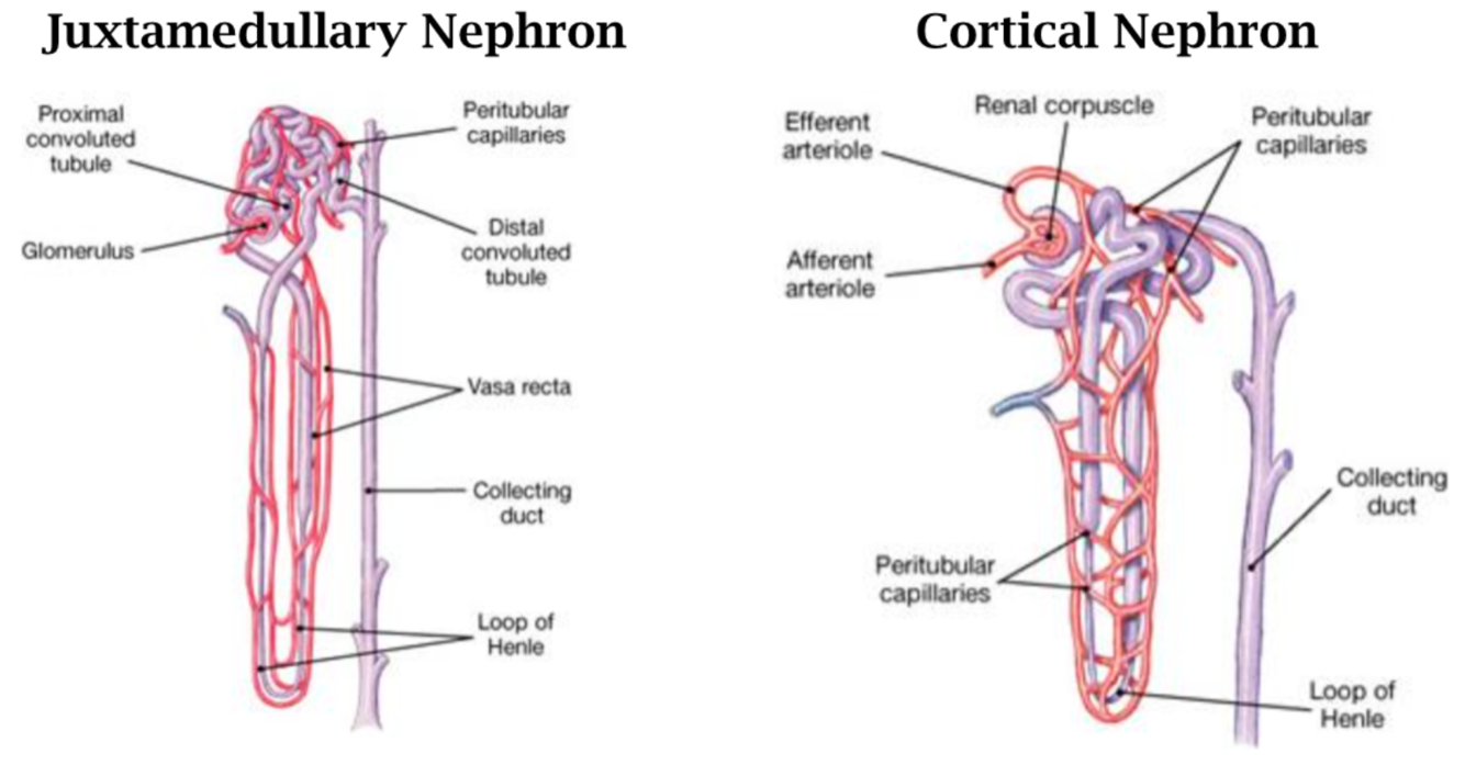 What are the two types of nephrons? Compare.
