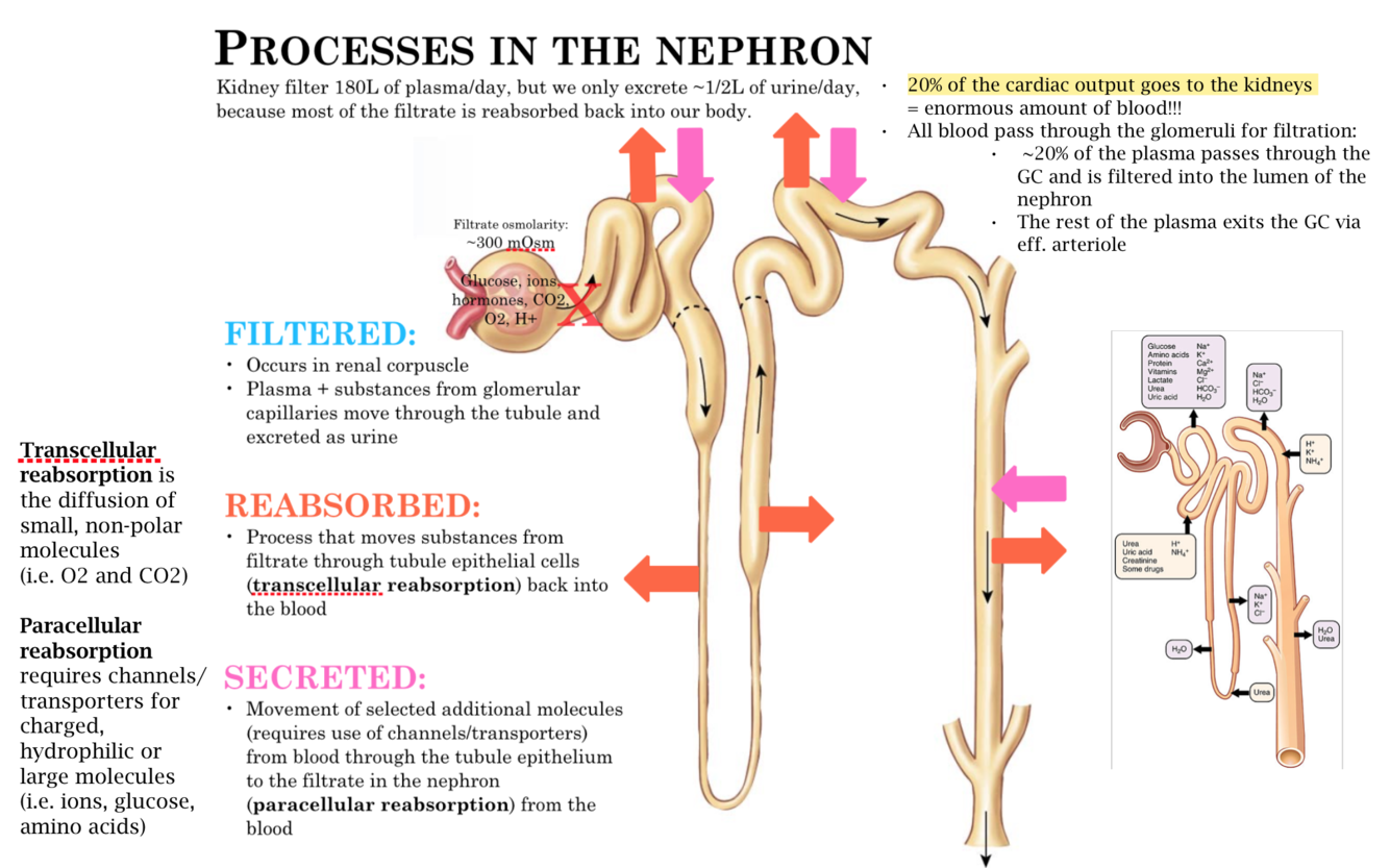 Explain the processes in the nephron:
