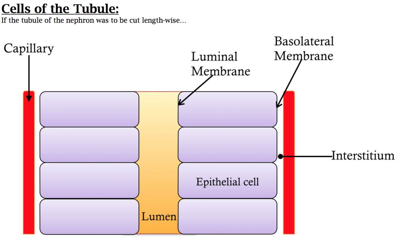 Draw a tubule of nephron cut length-wise and label the following structures: