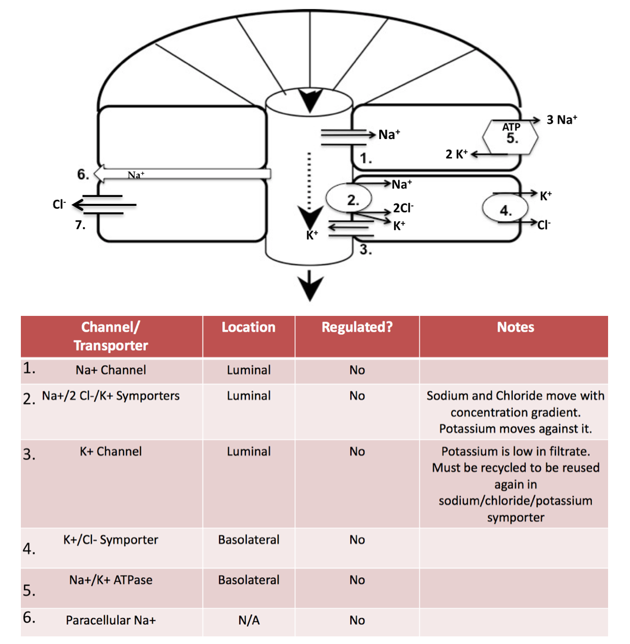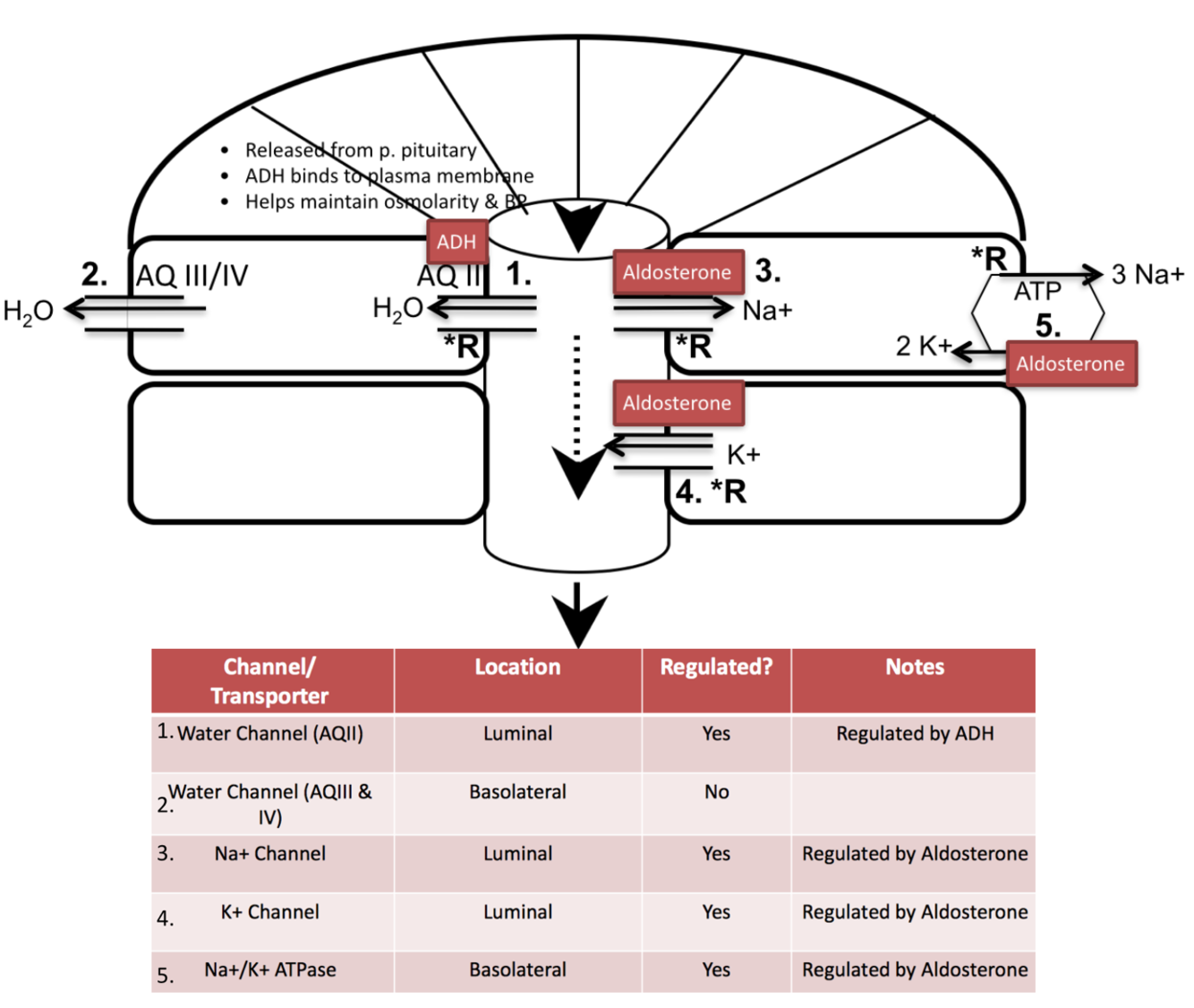 Note: Don’t need to know how to draw channels/transporters for distal tubule