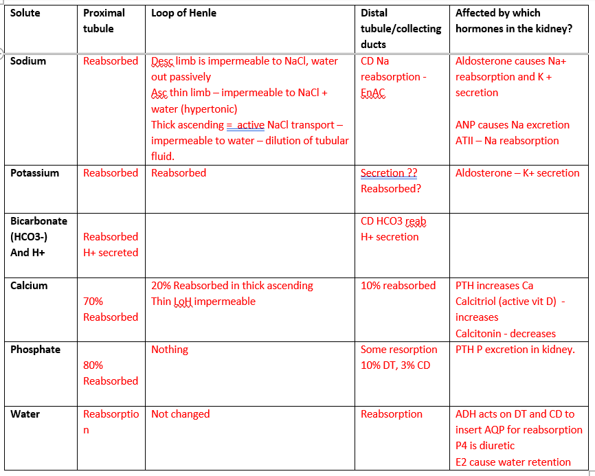 Half the plasma calcium is bound to proteins so it is only the ionised form which is available for filtration. Reabsorption of calcium occurs in the proximal tubule paracellulary however the regulation of how much is reabsorbed occurs in the ascending limb of the loop of henle, the distal tubule and collecting ducts.