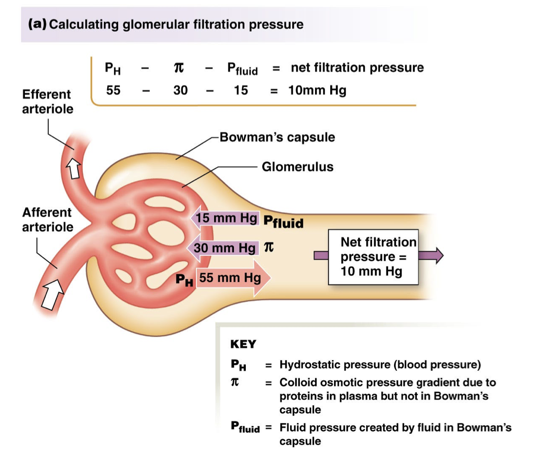 Net filtration pressure = Hydrostatic pressure - colloid osmotic pressure - fluid pressure