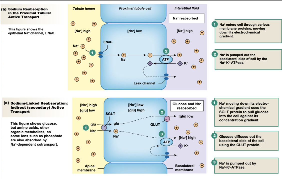 What are the transporters in the proximal tubule which reabsorb Na+?