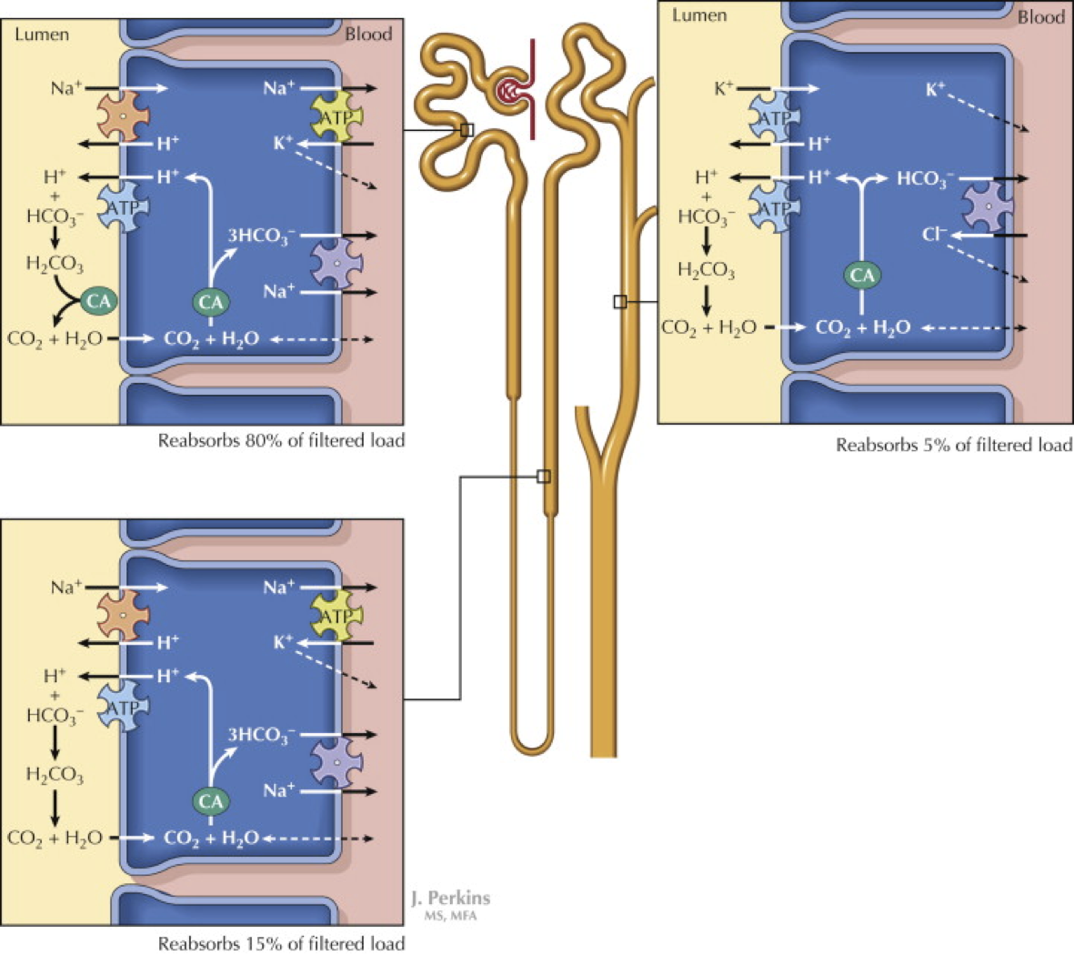 How is HCO3- reabsorbed?