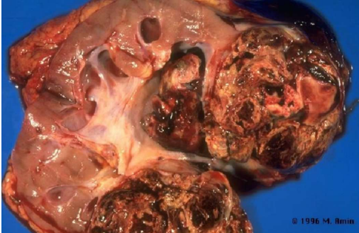 emorragico. Nefrectomia, si osservano formazione di aspetto cistico, replete di sangue o di urina,