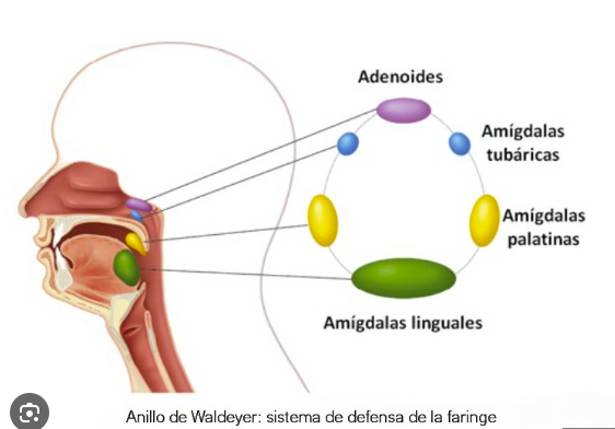 Un conjunto de masas de tejido linfoide en la faringe que se activa ante la presencia de microbios (virus, bacterias, hongos).