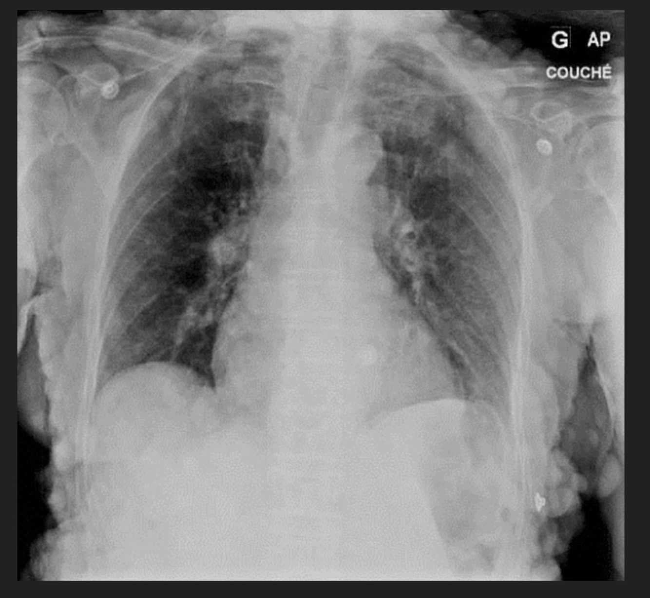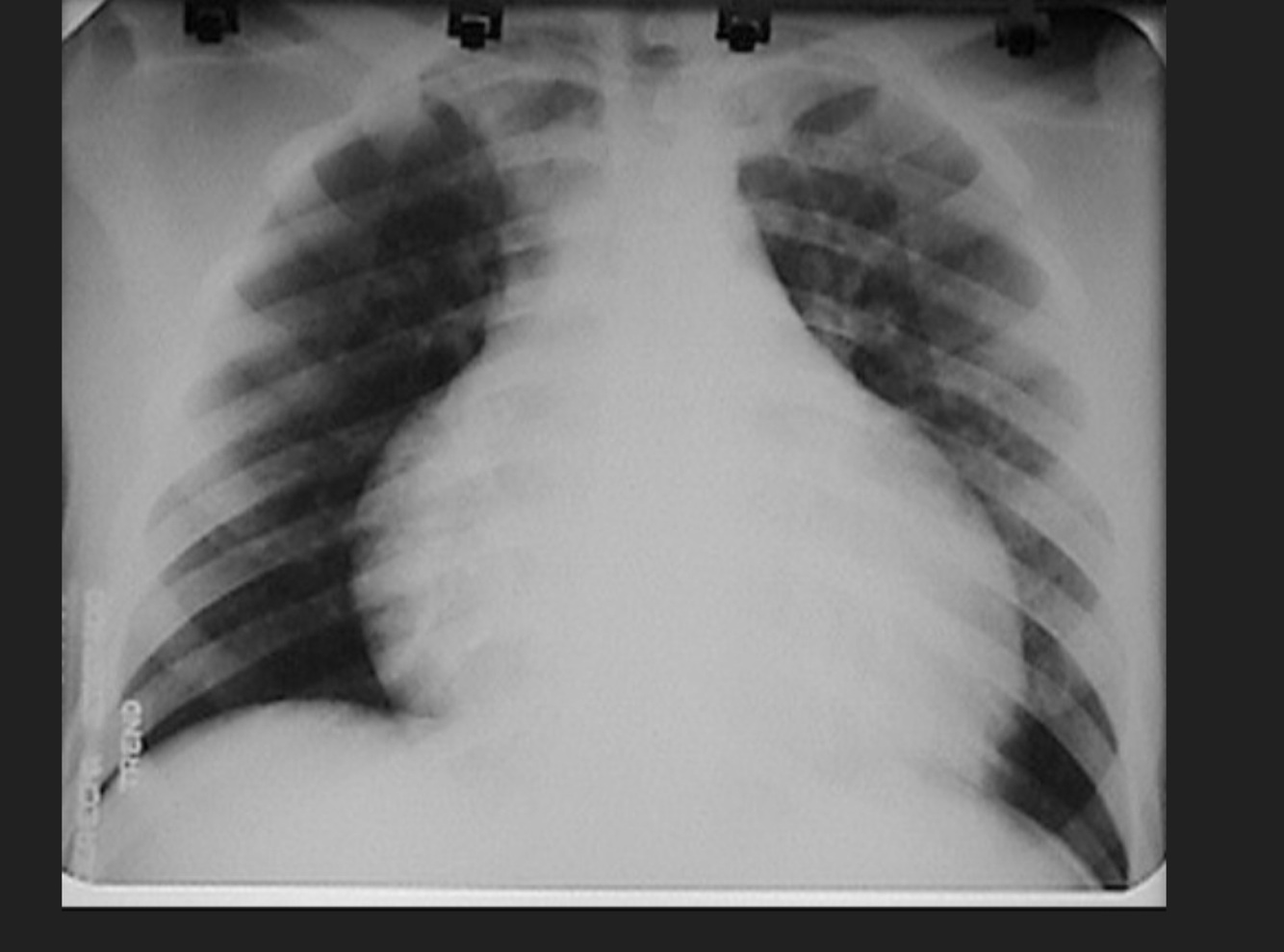 Masculino de 54 años. Disnea, dolor precordial, ruidos cardiacos apagados