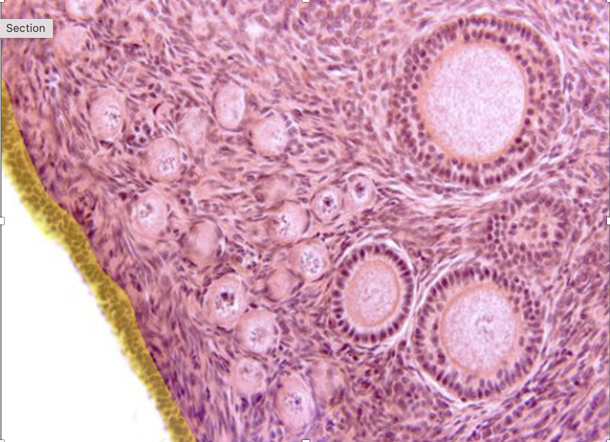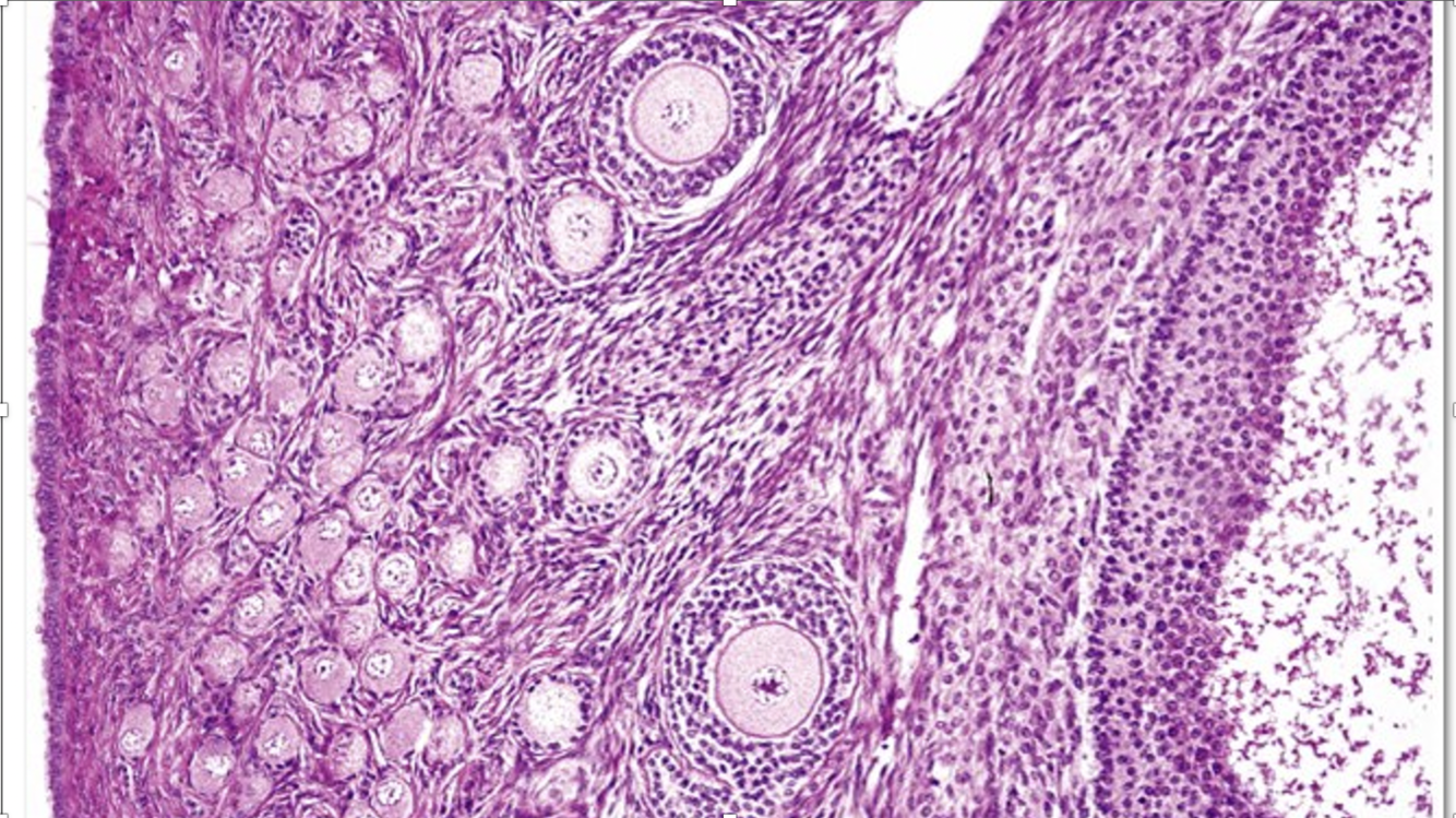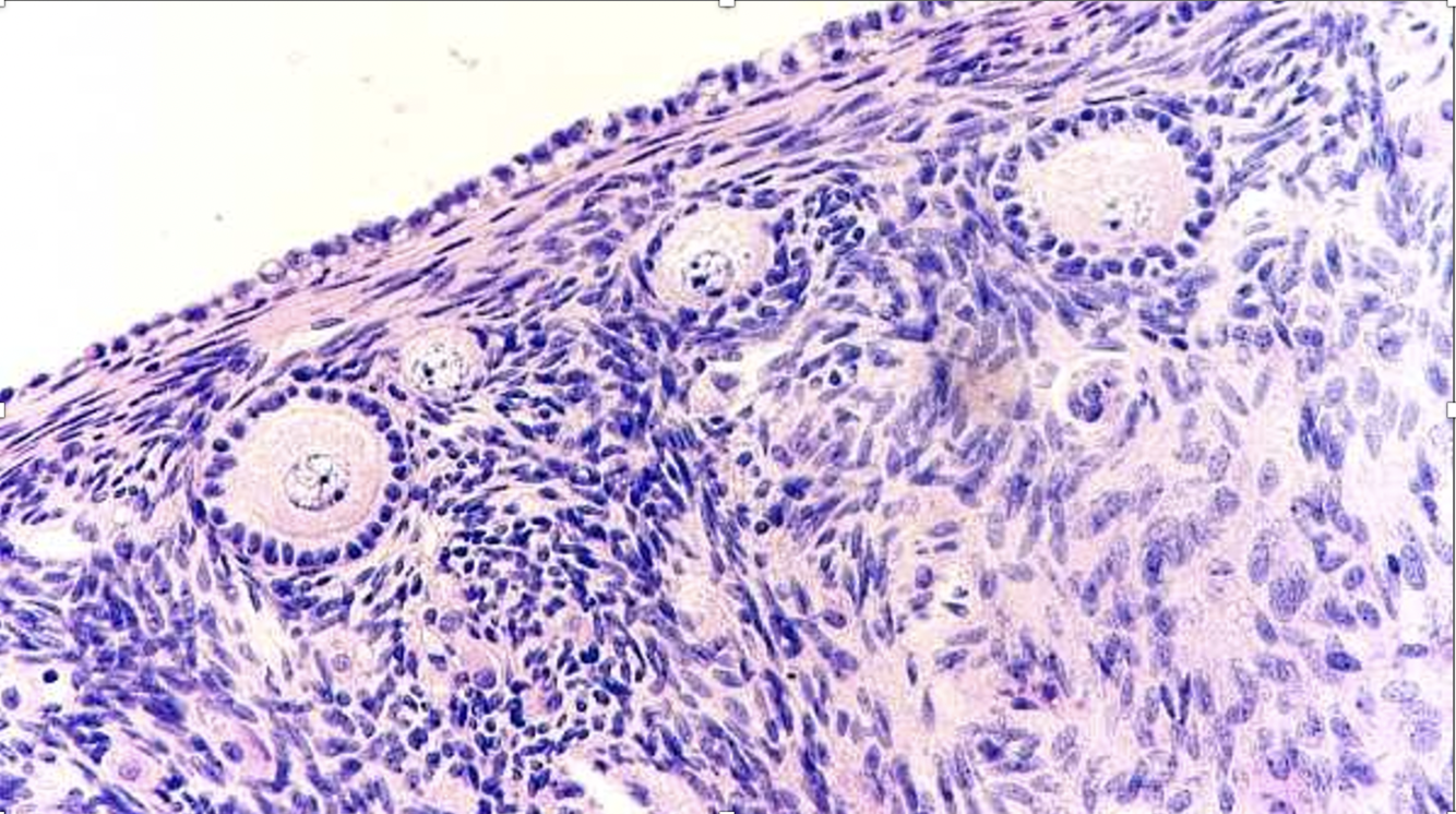 órgano: ovarios (foliculos primordiales, primarios, secundario y graff)