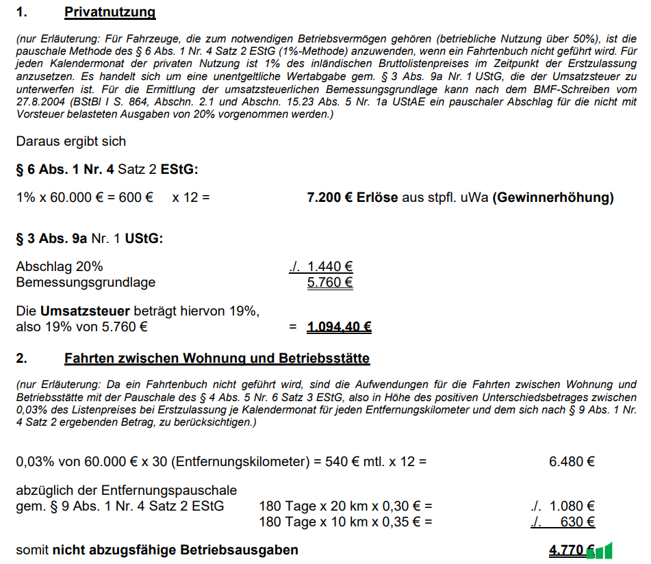 §§ 1 % Regelung Privatnutzung Kfz BV