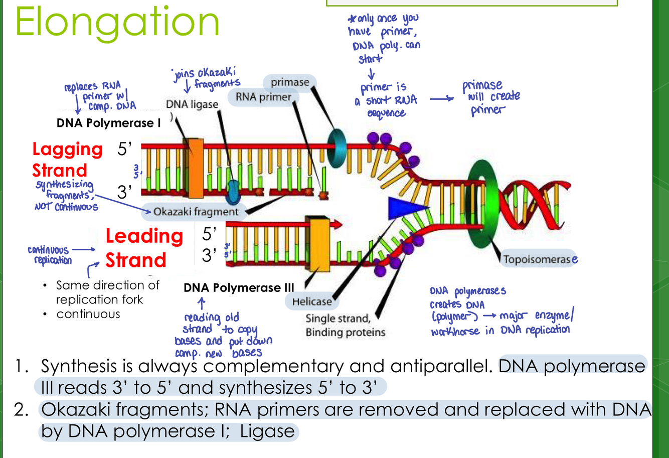 Also, they both have proofreading 3’-> 5’ ability to check for mutations/errors (this is known as exonuclease activity as well, which cuts from the end of the sequence)