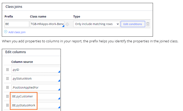 In a report definition the prefix combined with the class name servces as an alias for the joined class and its properties.