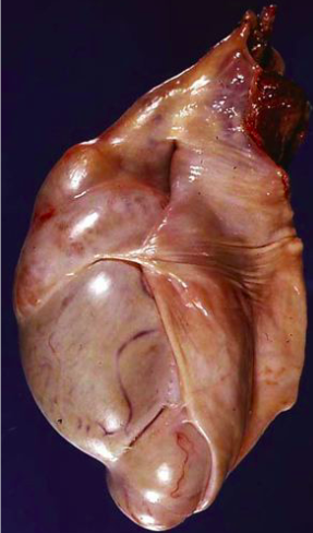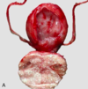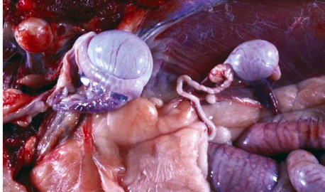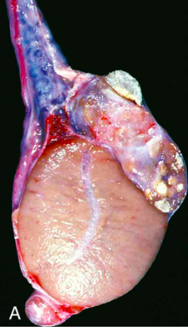 epididymitis (you can see scarring, fibrous adhesions), caused by brucella ovis in a sheep