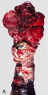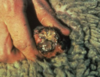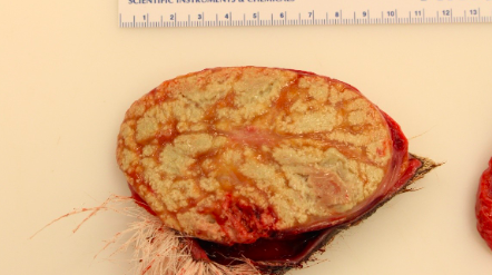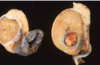 this is a testicle of a caribou. What is this disease and what likely caused it?
