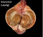 Name the condition shown in the testicle below and state the conditions that must be met for it to be this: