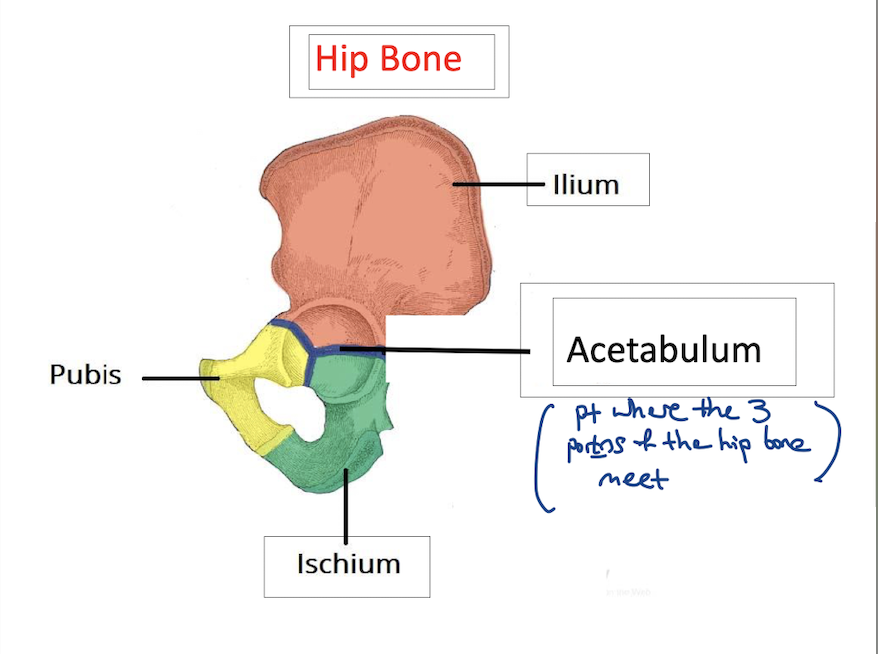 name the parts of the hip bone