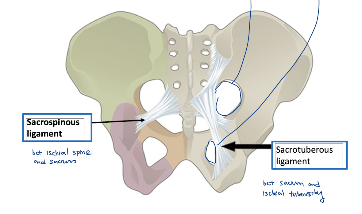 * pudendal nerve exits through greater sciatic foramen and re-enters through lesser sciatic foramen (recap!)