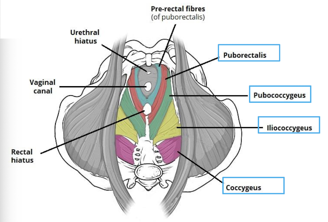 anatomical facts about the pelvic diaphragm/floor: