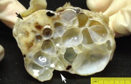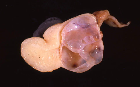 a type of intraovarian cyst common in dogs, cats, and guinea pigs esp, it is a reminant of the rete ovarii from mesonephric tubules, usually incidental