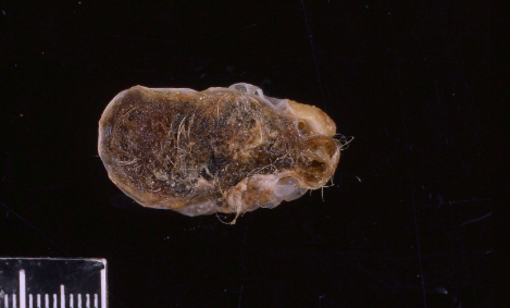 a arare and benign tumor happening in the ovary s a result of 2-3 germ layer differentiation, it can include hair, bone, cartilage, and teeth