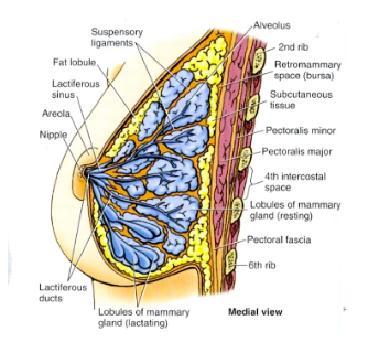 Secretory tissue of breast made up of 15-25 lobes