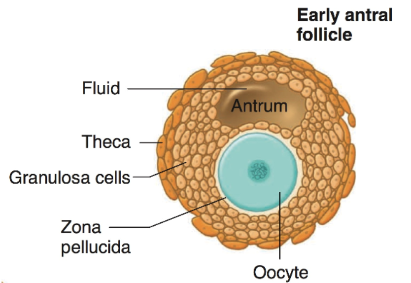 -granulosa (FSH) and thecal (LH) cells begin to produce hormones