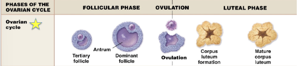 -follicular phase: marked by follicular growth, most variable 10 days to 3 weeks