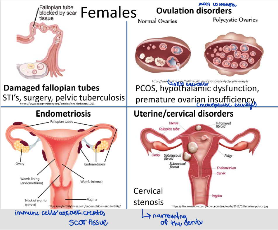 -various combinations of estrogen and progestins (or progestin only) inhibit gonadotropin secretion (LH and FSH) from the anterior pituitary necessary for follicle development/ovulation. thickened cervical mucus
