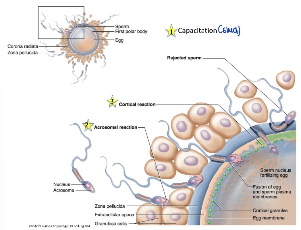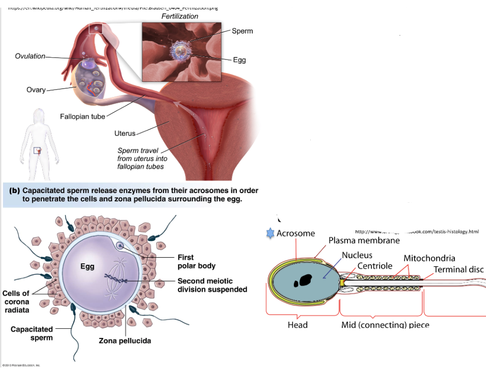 -sperm must penetrate loosely connected granulosa cells and the zona pellucida later