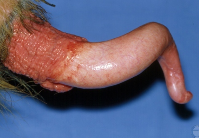 Penile hematomas occur during breeding when the bull fails to achieve intromission prior to the copulatory thrust, resulting in a bending of the erect penis. Preputial prolapse frequently accompanies penile hematomas & has been reported as 1 of the most common presenting complaints .