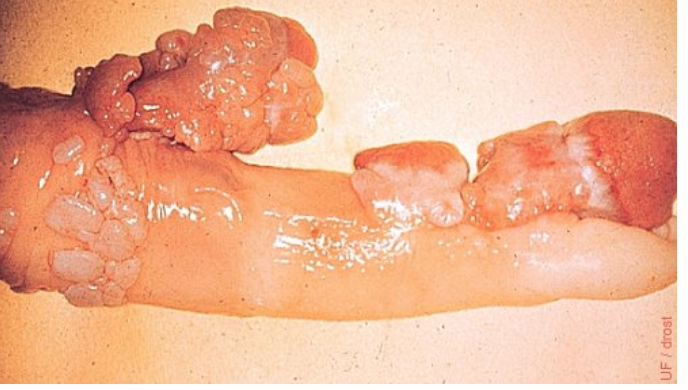 Swelling dt hematoma usually occurs near distal sigmoid flexure, which in standing bulls is near the base of the scrotum, or in the proximal half of the sheath.