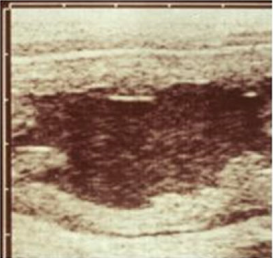The uterus has the following appearance on ultrasound examination.
