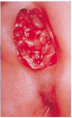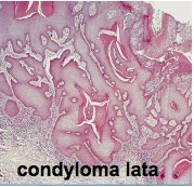 6 weeks to 6 months after chancre: Can lead to systemic symptoms, lesions (condyloma lata- shown below) which are highly infectious.