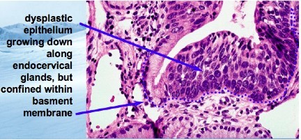 Cervical in situ neoplasia: Squamous neoplasia arizing at the squamocolumnar junction (transformation zone)