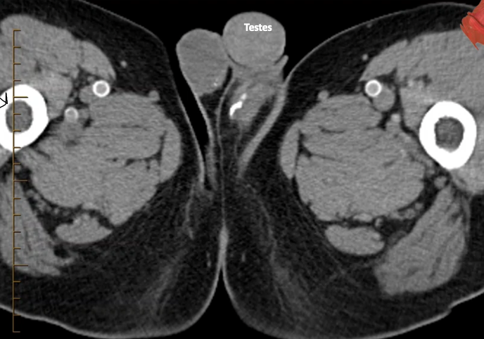Calcification within the vascular structures; small bit of calcifications in vas deferes
