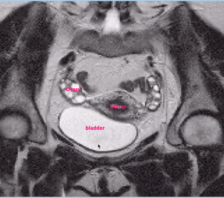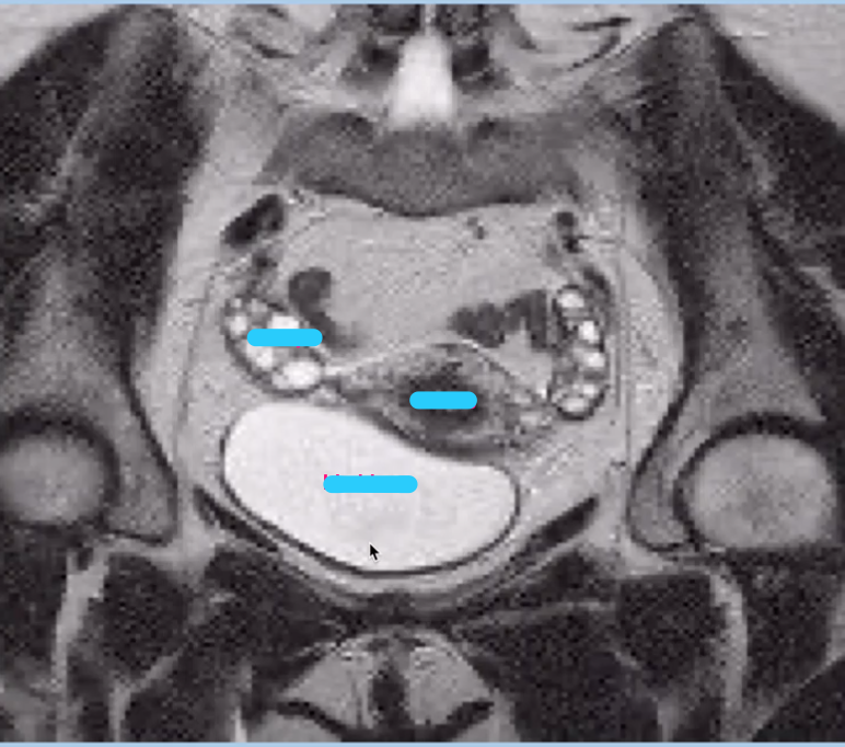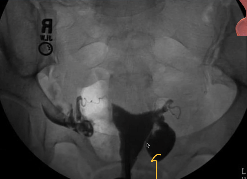 Hydrosalpinx: dilation of fallopian tube on LHS