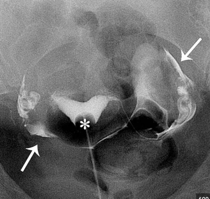 Assess normal shape of uterine cavity, patency of fallopian ducts, free spill of contrast into interperitoneal space