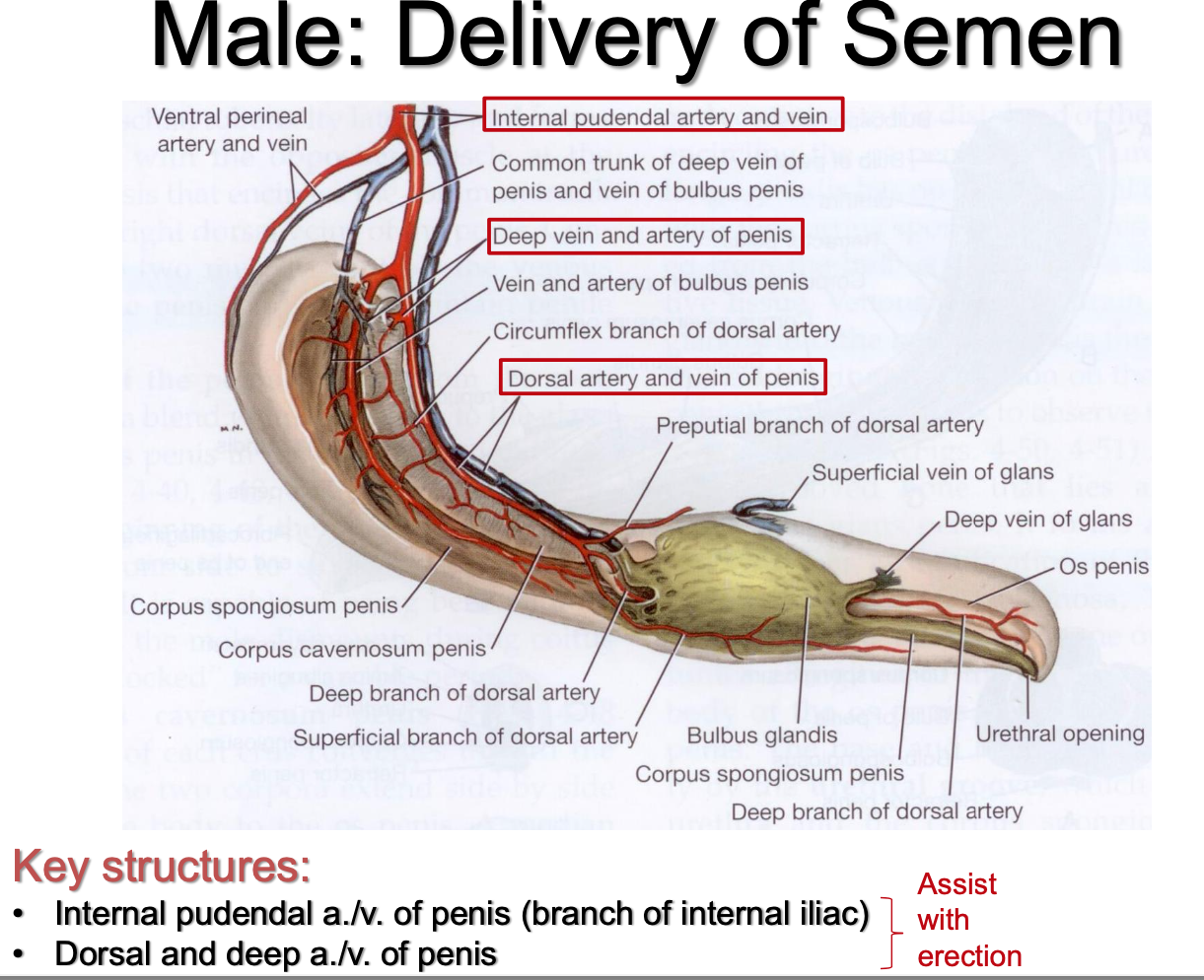 - corpus cavernous (bulbus glandis, pars longa glandis)