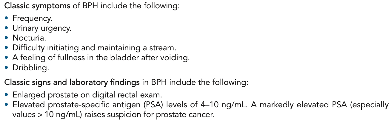 Benign prostatic hyperplasia (BPH). BPH increases with age and is found in approximately one half of men 51–60 years of age.