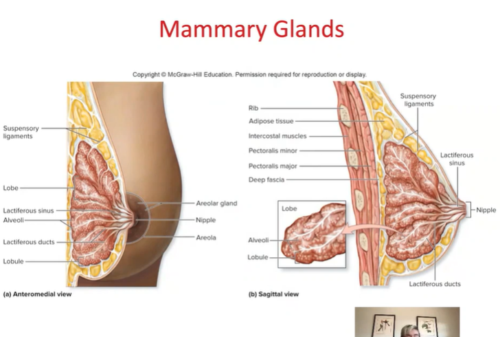 ~15-20 lobes of glandular tissue embedded into adipose tissue of breast