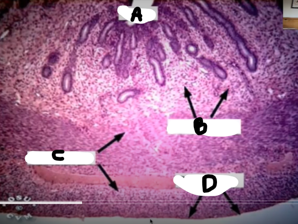 Endometrium- innermost, thin mucous membrane lining uterus cavity