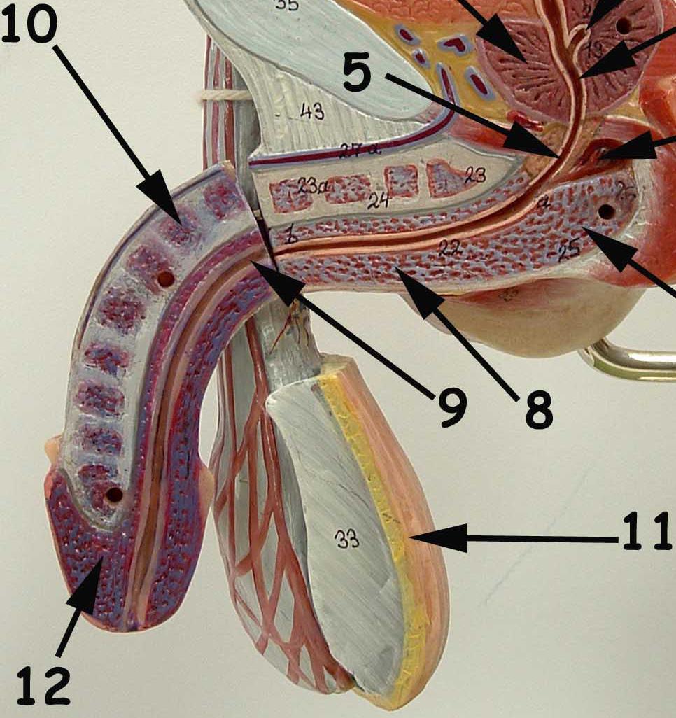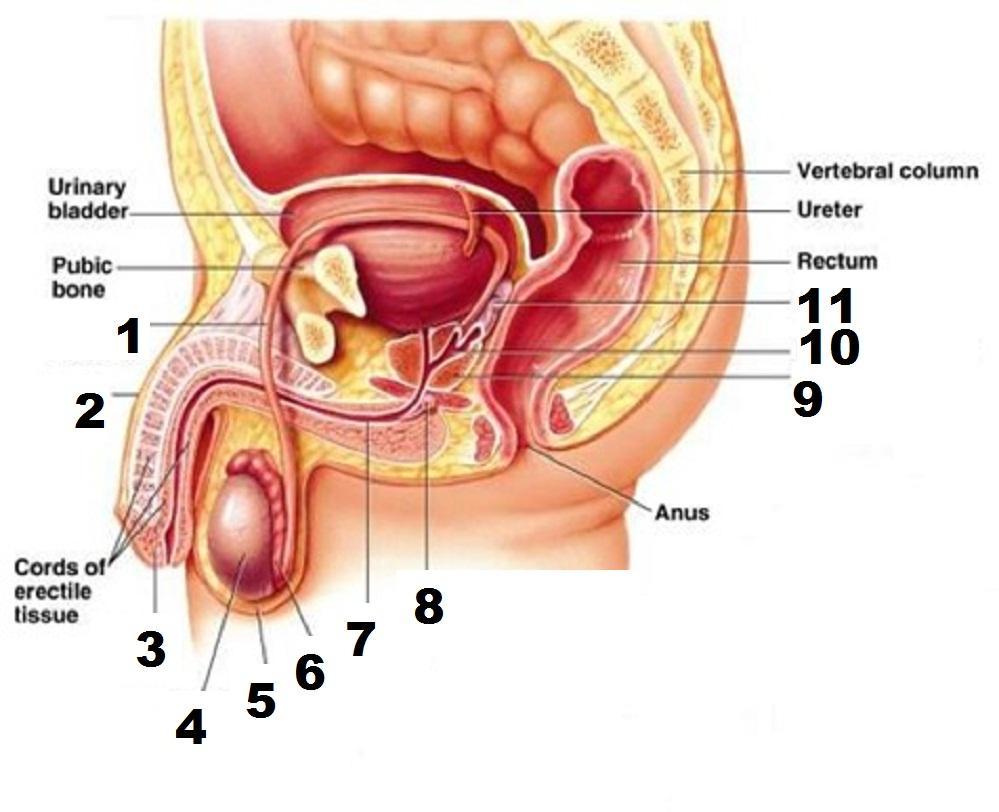 What is the order of the reproductive duct system in males from seminiferous tubule to urethra?